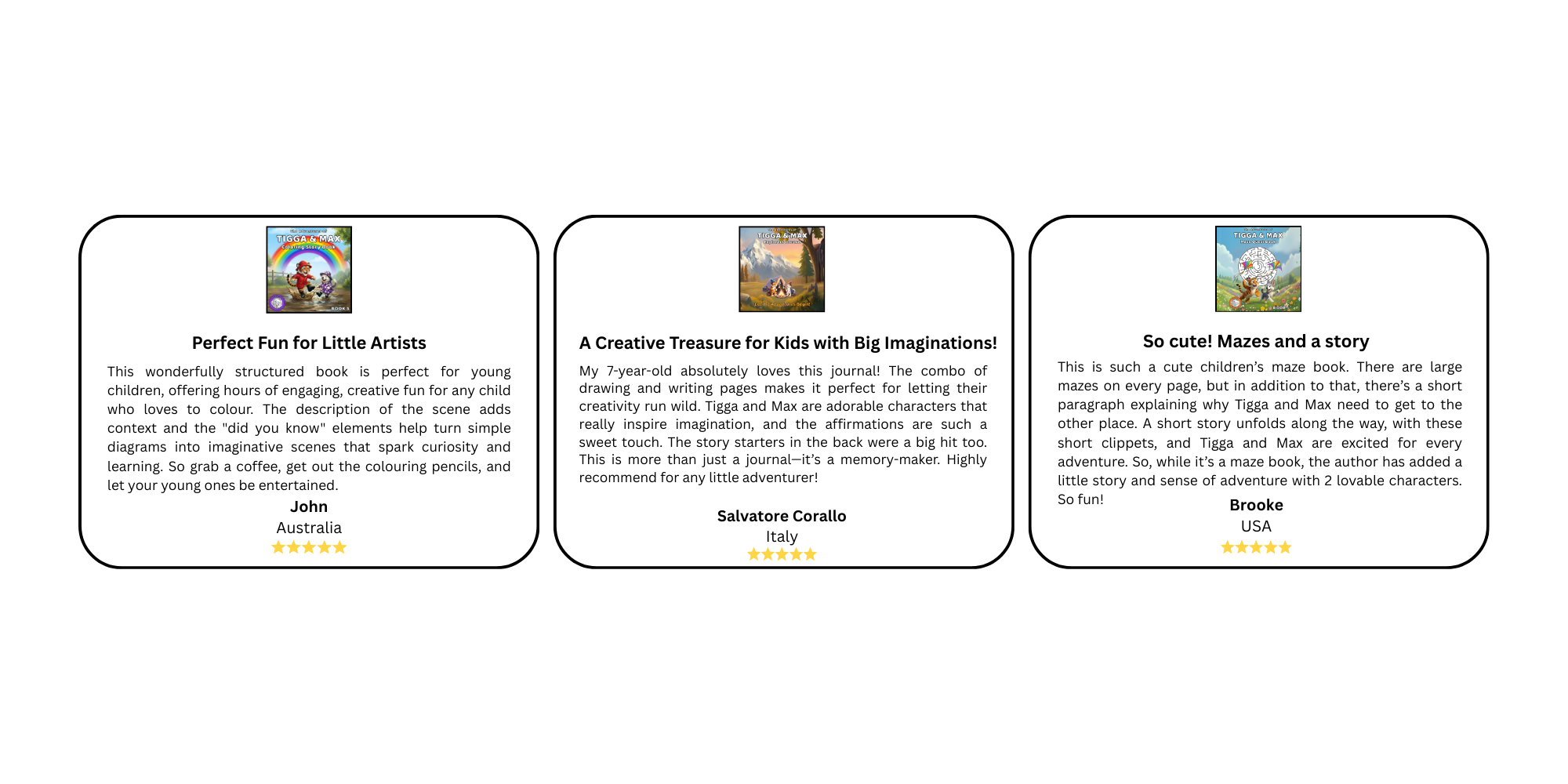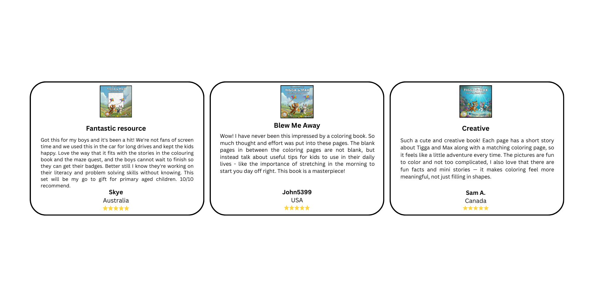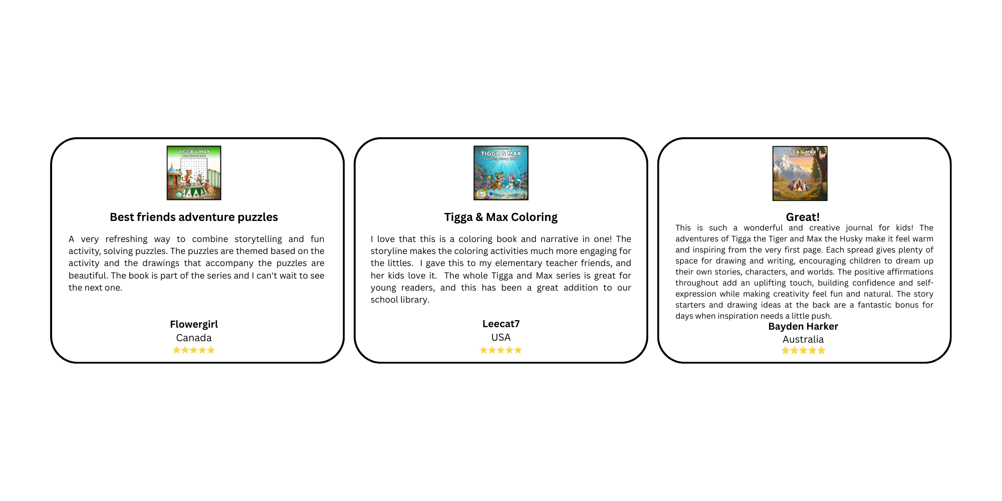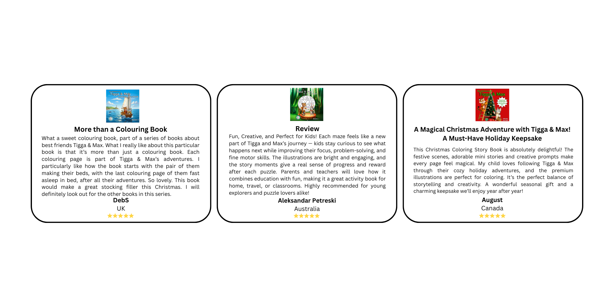 The Tigga & Max Adventure Club is for those who love to color, explore, and collect, there’s a playful way to track progress, earn badges, and feel proud with every completed book. It’s more than a series—it’s a world of achievement, celebration, and colorful fun. Scan the QR code at the back of each book and collect all the fun